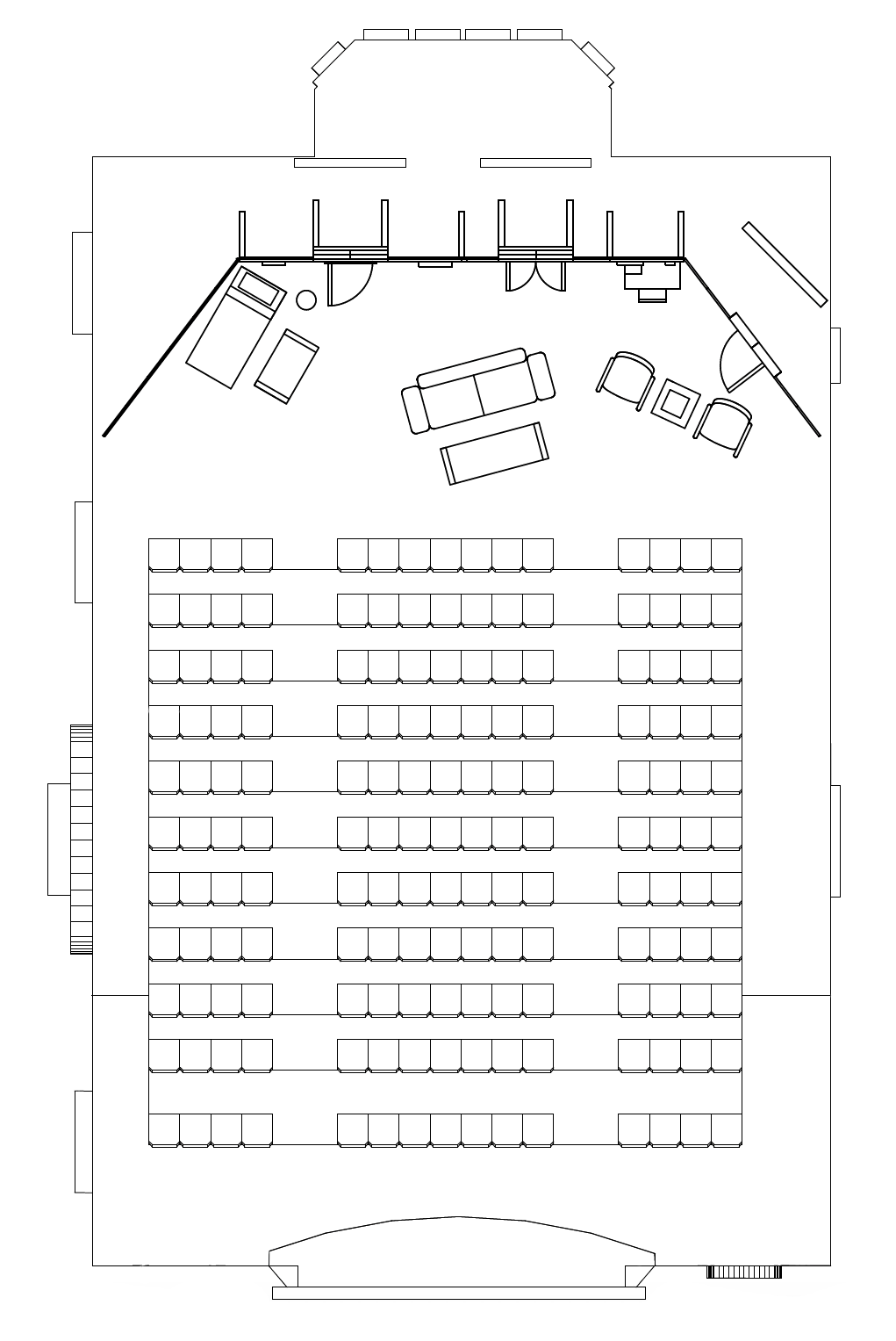 In the early stages of the process, I hand sketched ideas in Photoshop to be in conversation with the director and other technical designers. I then created a clear groundplan in Vectorworks for installation and furniture placement.